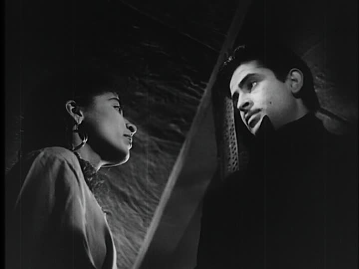 Raj Kapoor is paired up with his legendary leading lady, Nargis. Now I confess I never quite got the "beauty" of Nargis, but I suppose that's not really important, what's important is that in this particular movie I could not get over her sniffling. I suppose it's a way of making the character cute and um... more country girl? But it made no sense to me. She is cute. And clueless. I guess in a modern film she'd be ditsy. But cute.